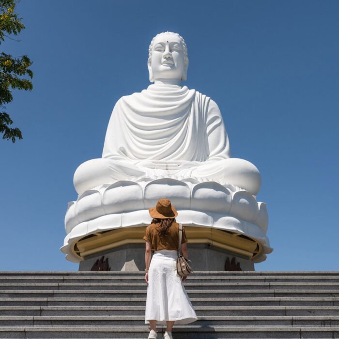 Long Son Pagoda – Is situated on the foothill of Trai Thuy Mountain in the city of Nha Trang. The temple is famous for its large white Buddha image which sits a top the mountain crest and can be seen from anywhere in town.